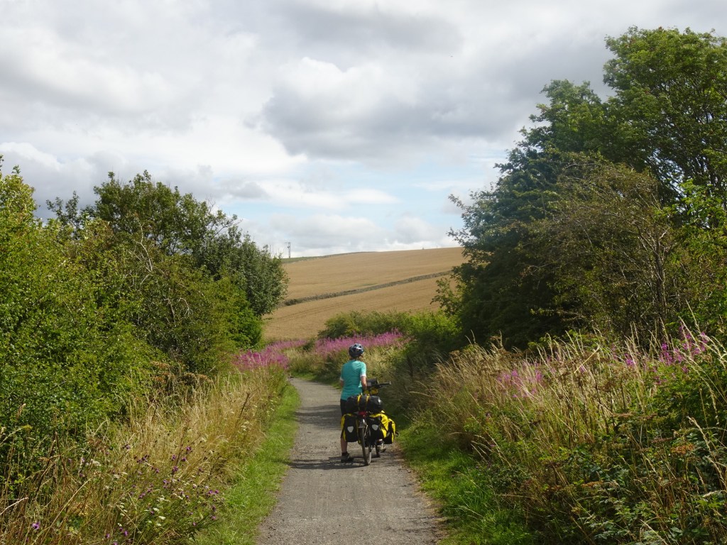 Als we nog niet zo lang op pad zijn en even op een bankje zitten om van het uitzicht over het dal van de rivier de Derwent te genieten, komt een reisfietster uit Alkmaar ons achterop. We wisselen ervaringen uit en ze fietst vervolgens een paar uur met ons mee.