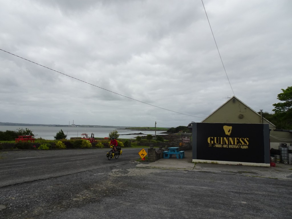 De Fisherman’s Hut, mooi gelegen aan de Shannon, is helaas nog dicht: de pubs gaan pas later op de middag open. De enige mensen die we zien zijn groepjes zondagsfietsers. Een daarvan brult, spontaan en allemaal tegelijk, aanmoedigingen in onze richting.