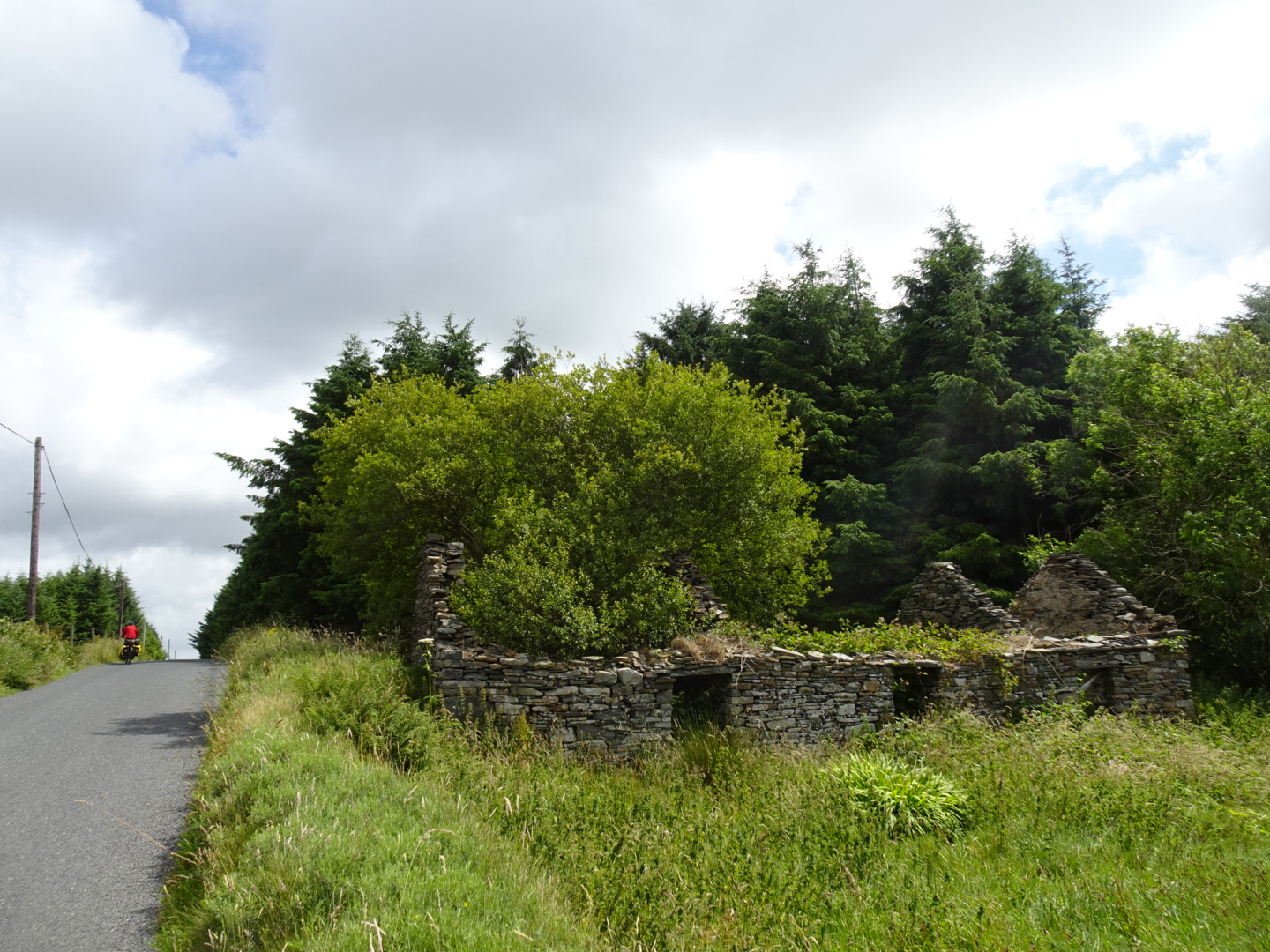 Het gaat vandaag wel erg op-en-neer. Talloze klimmetjes, korte en langere, soms steil. De aloude Ierse versregel ‘May the road rise to meet you’ krijgt zo wel een heel speciale betekenis. Een groot deel van de dag rijden we bovendien door vrijwel onbewoond gebied. Woest land, bossen soms, zelfs hoogveen: boglands. Hier en daar zou je er zó turven uit kunnen steken – wat helaas ook nog steeds gedaan wordt.