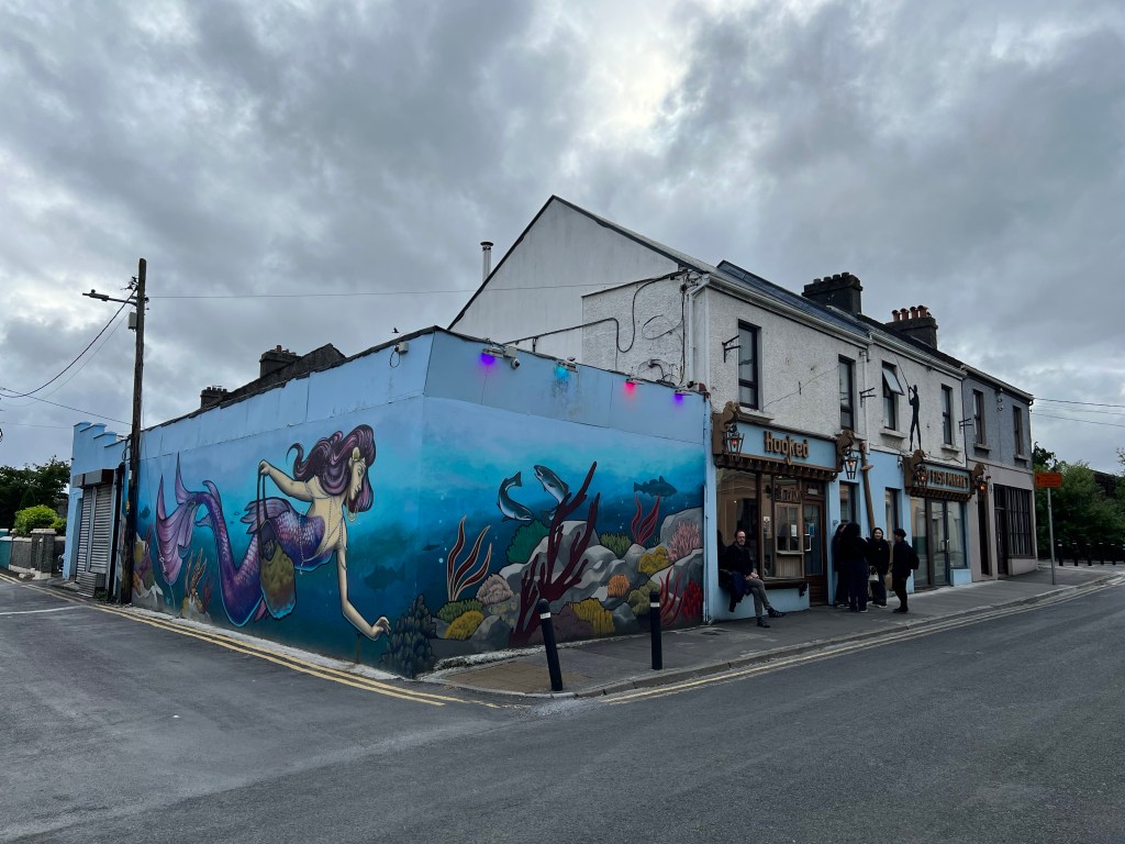 Langs de drukke weg naar Galway die we later op de dag moeten volgen loopt een splinternieuw fietspad. Met wel veel onnodige hekken. Telkens moeten we bovendien de gevaarlijke weg oversteken omdat het fietspad aan de andere kant verder gaat. Volgens Rienke is dit fietspad ontworpen door iemand die een hekel aan fietsers heeft. Na een paar km verdwijnt het abrupt. Nu mieten we alsnog verder over de verkeersweg. Die wordt alsmaar drukker als we Galway naderen.