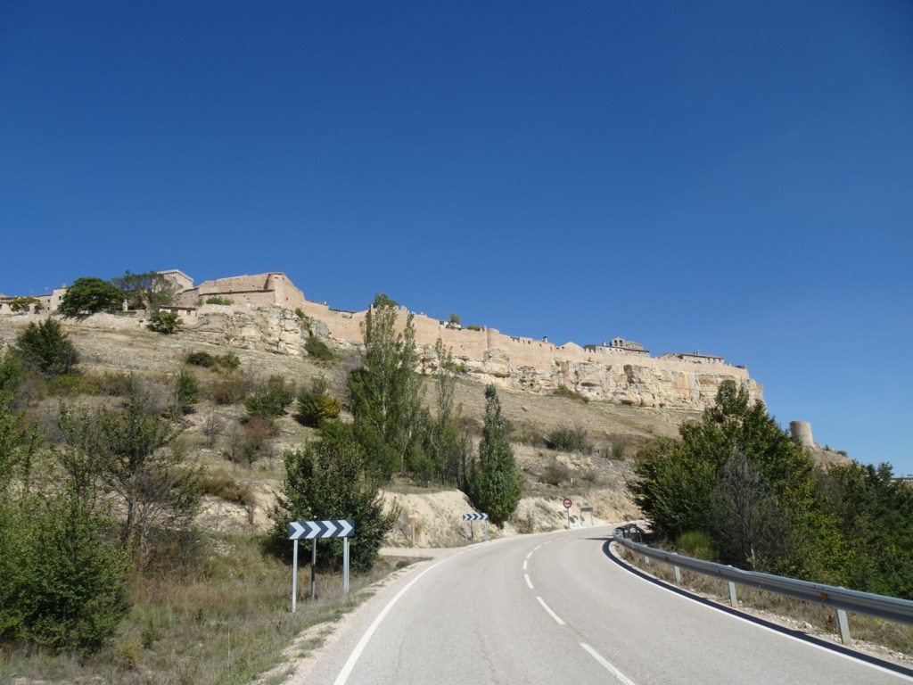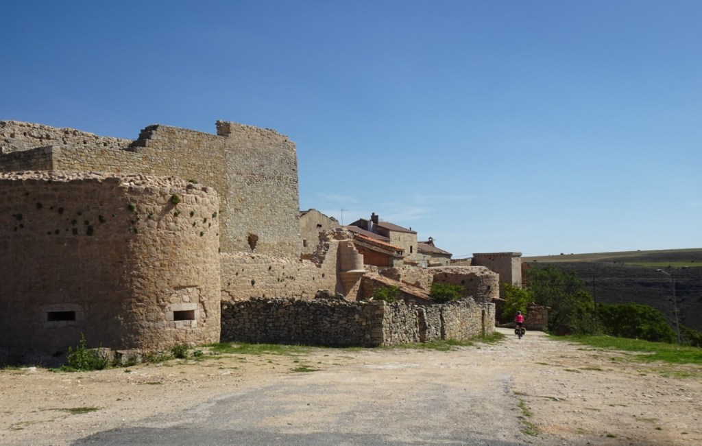 En dan Rello. Een compleet dorp binnen de muren van weer zo’n enorme burcht op een hoge rots. Adembenemend maar onbekend; er is niet eens een bar. We hebben het dorpje rond gefietst langs de binnenzijde van de muren en niemand gezien.