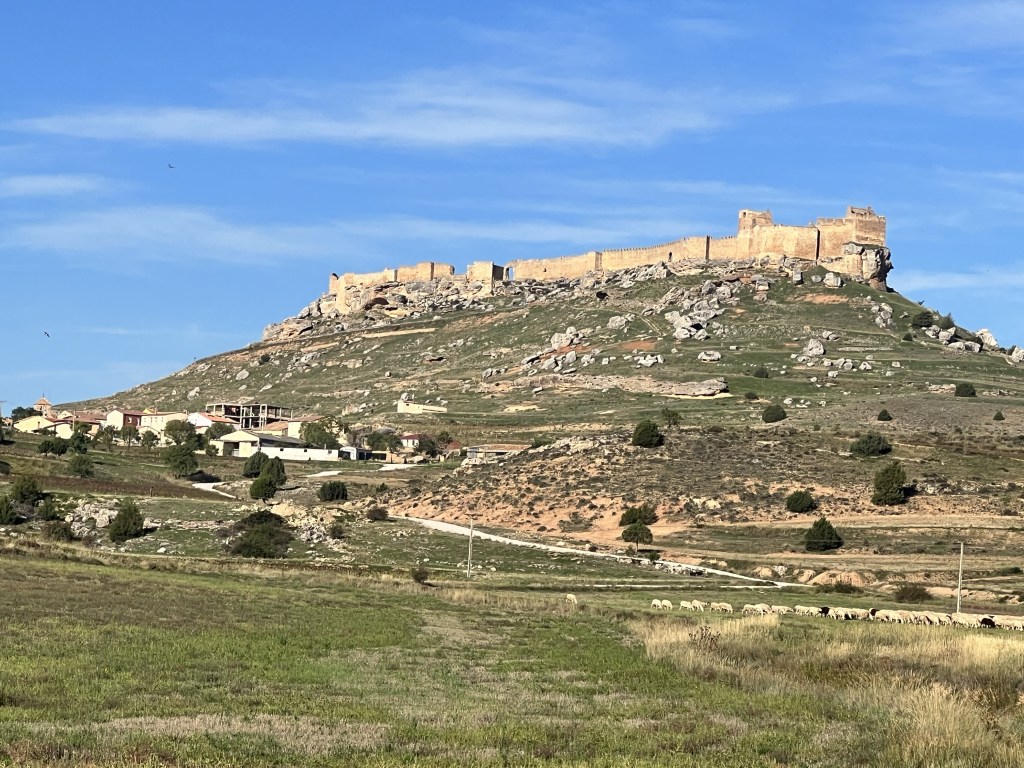 Als we El Burgo achter ons gelaten hebben, zien we al van kilometers afstand de enorme burcht van Gormaz, de grootste van Spanje, op een tafelberg. Moors, tiende eeuw.