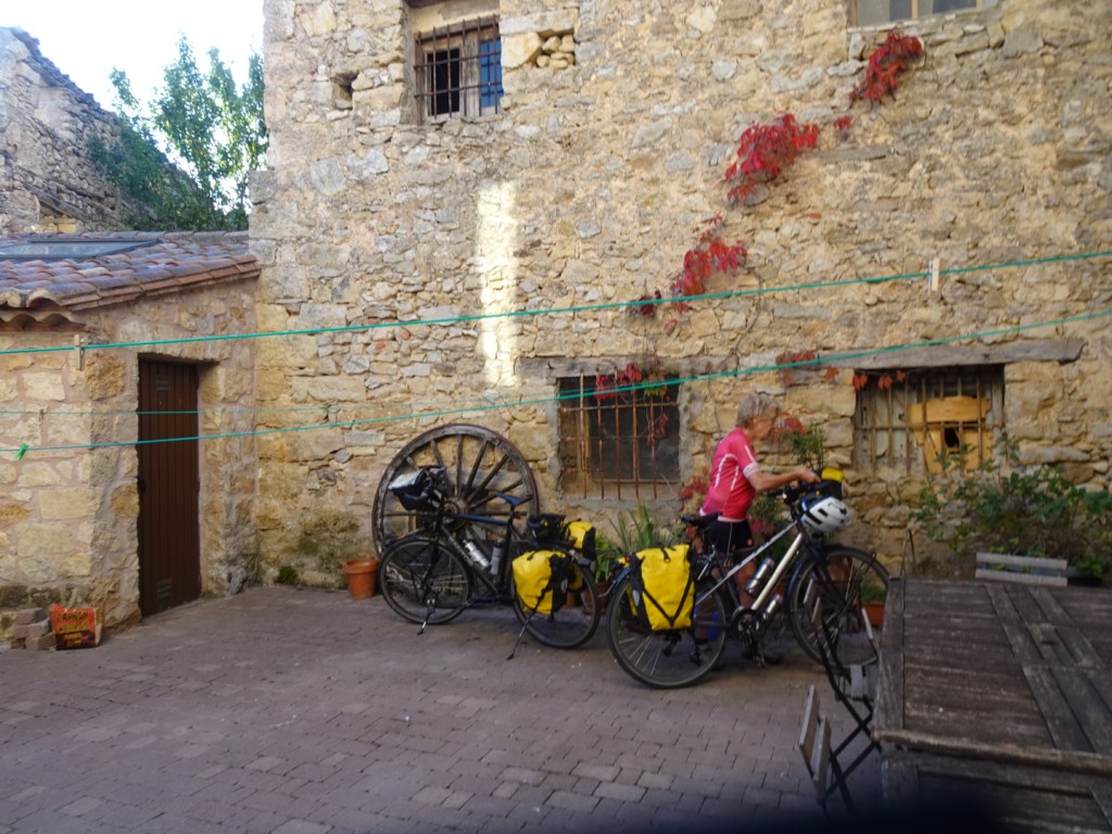Het dorp uit is zeer steil, gelukkig maar kort. Maar de beklimming die volgt is ook behoorlijk steil; de eerste 750 meter lukken ons maar nét. We worden luid geprezen door de vierde auto van de dag. Terecht, dit hadden we aan het begin van de fietstocht helemaal niet gekund. De laatste anderhalve kilometer naar boven langs een prachtige kloof gaan geleidelijker.
