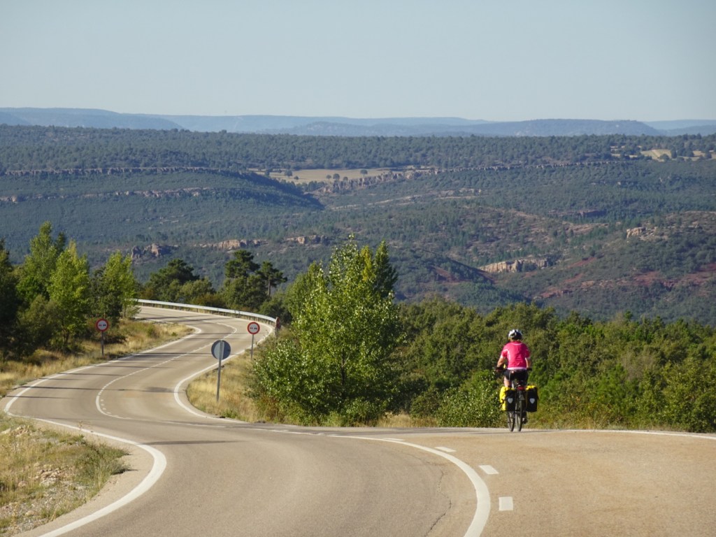 We fietsen richting het natuurgebied Alto Tajo. Geen motoren en ook geen vliegen vandaag. Eindeloze vergezichten. Mooi. Wat is dit toch een groot, dunbevolkt land.