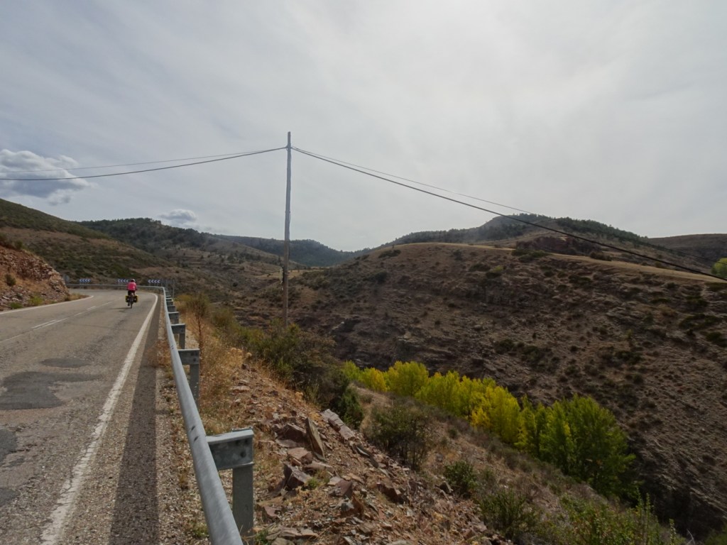 Na de lunch wordt het landschap ruiger en mooier. We naderen de provincie Teruel. Er komen herfsttinten in het landschap. Vliegen er gieren boven ons hoofd? (Op de foto’s alleen blauwe lucht).