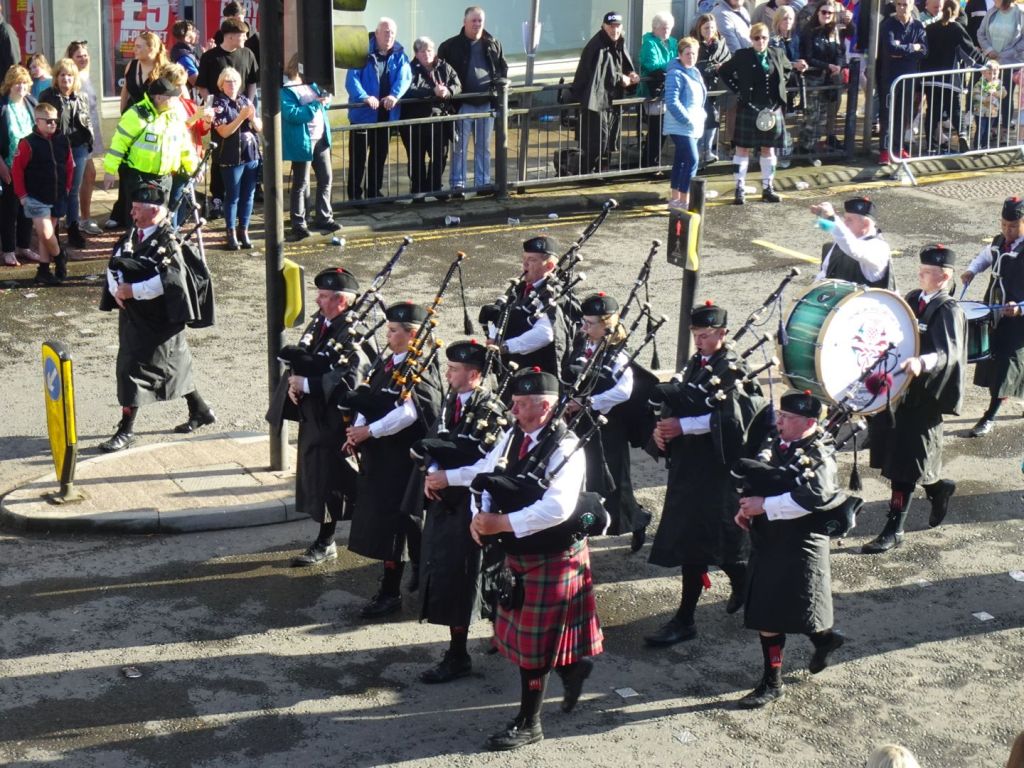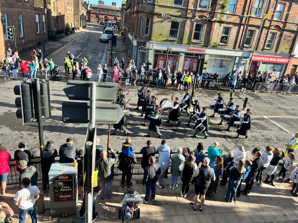 In de loop van de middag gaat het echt hard regenen. In Annan kiezen we daarom voor een hotel aan de High Street in plaats van de camping. Geen slechte keus want het blijkt vandaag (eerste zaterdag van juli) Riding of the Marches te zijn en de Pipes & Drums marcheren hier door de straat.