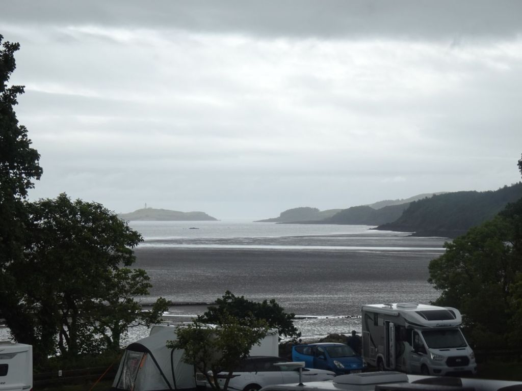 Camping Seaward, een paar miles verder richting onze volgende bestemming Newton Stewart, heeft een prachtig uitzicht. We mogen onder een grote boom gaan staan.