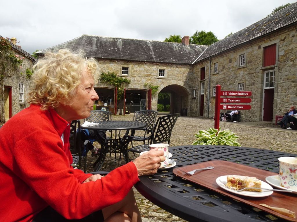 Tegen 12 uur komen we bij het imposante koloniale landhuis Florence Court uit eind 18e eeuw. Zowel het kasteel als de tuinen eromheen zijn prachtig gerestaureerd. We drinken koffie in het zonnetje en bekijken de Colonel’s room.