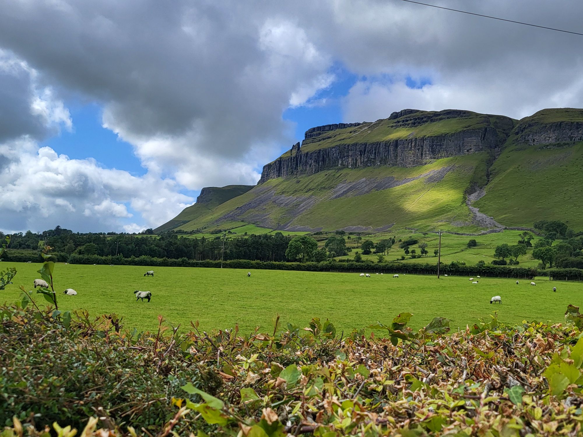Terwijl we langs Lake Glencar rijden, beginnen aan onze rechterhand de bergen die aan de kust eindigen met de beroemde Ben Bulben.