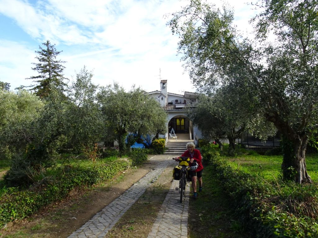 De grote tuin van de B&B staat vol olijfbomen. De vriendelijke eigenaar zegt dat hij vandaag en morgen niet gaat oogsten. Te veel kans op regen en dan gaan de olijven schimmelen.