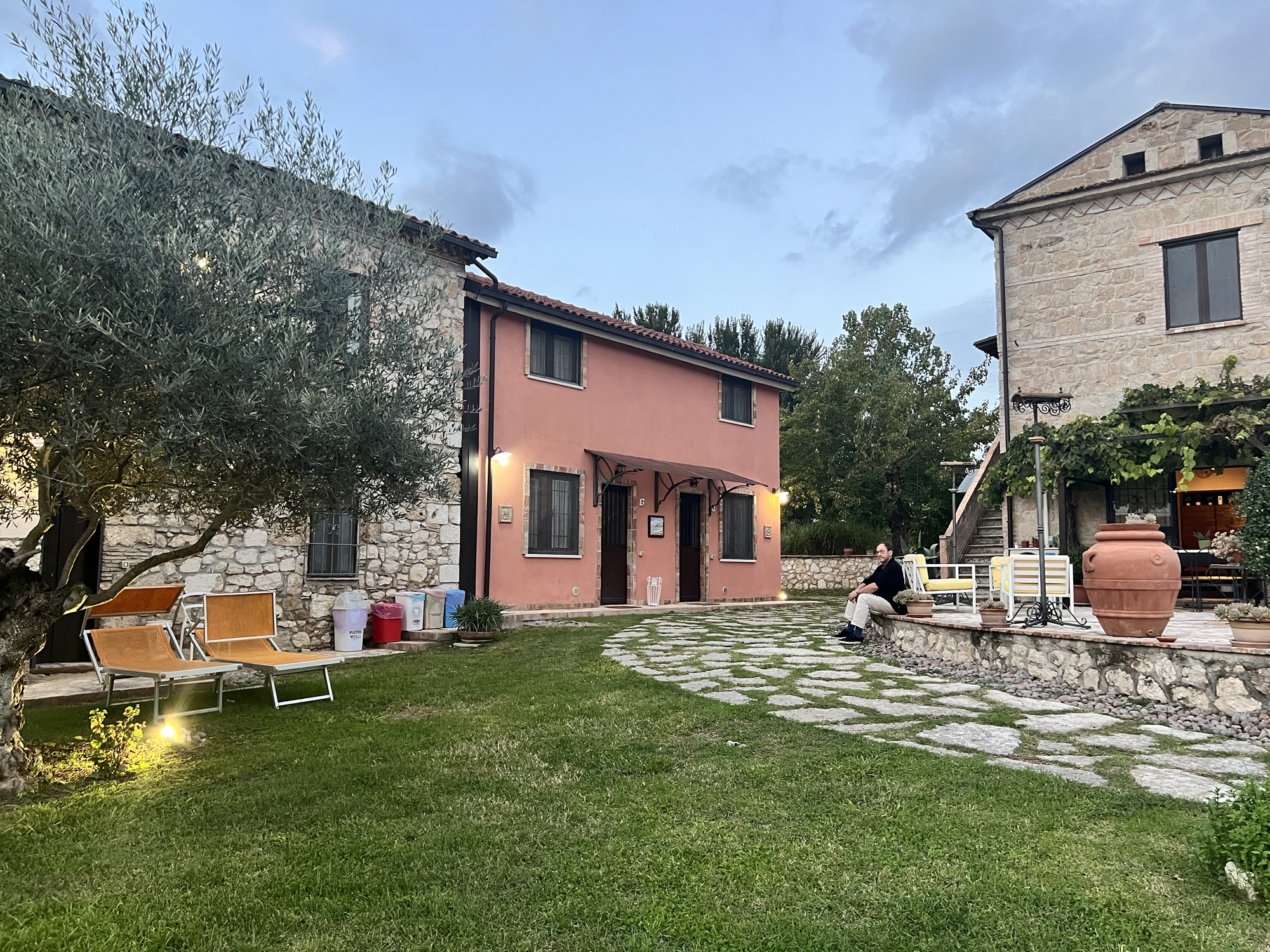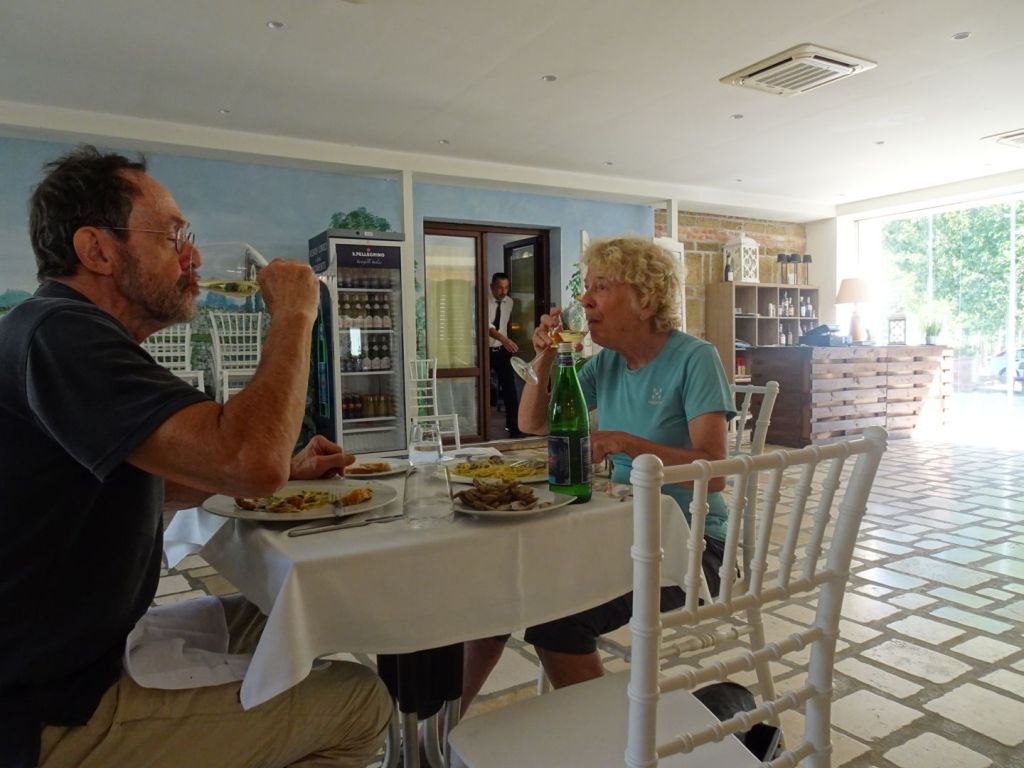 Het agriturismo dat we gisteren hebben gereserveerd ligt even buiten de stad. We kunnen meteen aan tafel: vanavond wordt er niet gekookt. Er arriveert juist een groot gezelschap dat iets komt vieren, wij worden apart gezet.