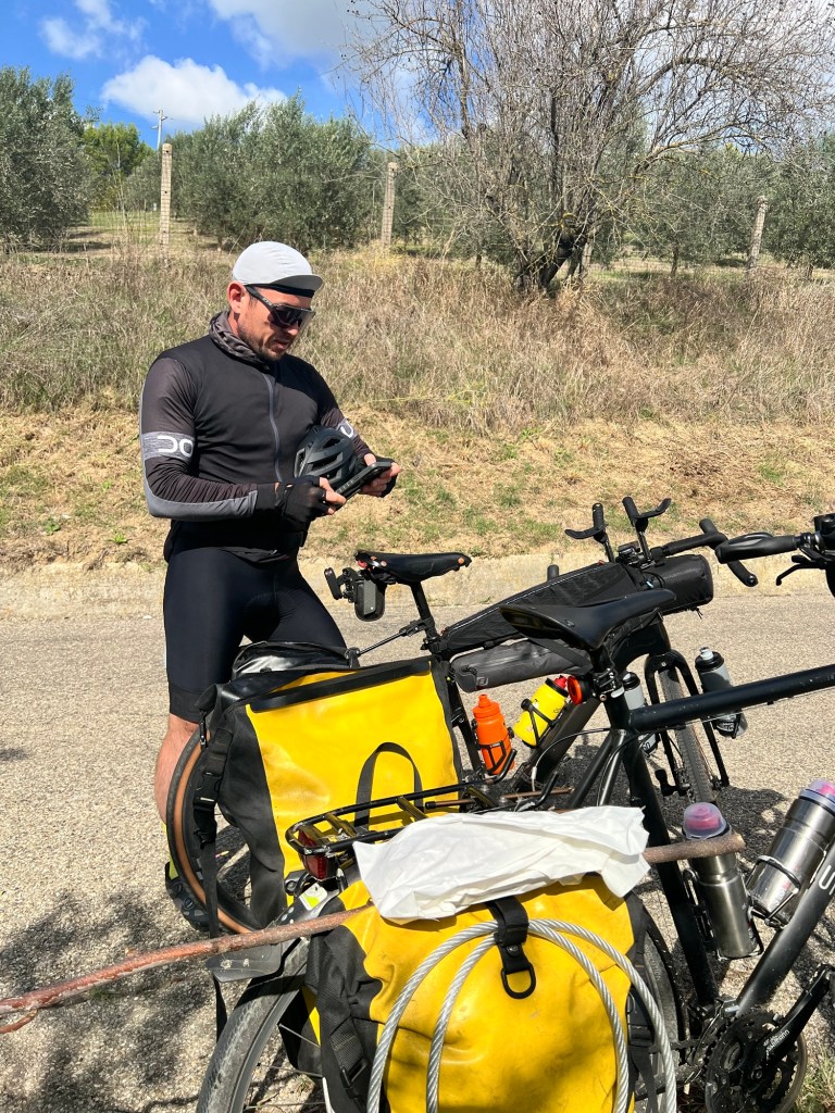 Als we zitten te lunchen komt ons een Kazak tegemoet rijden. Hij is zeer professioneel toegerust en heeft heel Europa al rondgefietst. Honden, ja daar heeft hij ook last van. Maar in Turkije is het nog veel erger dan hier. En hij moet erg lachen om de toeter op mijn fiets.