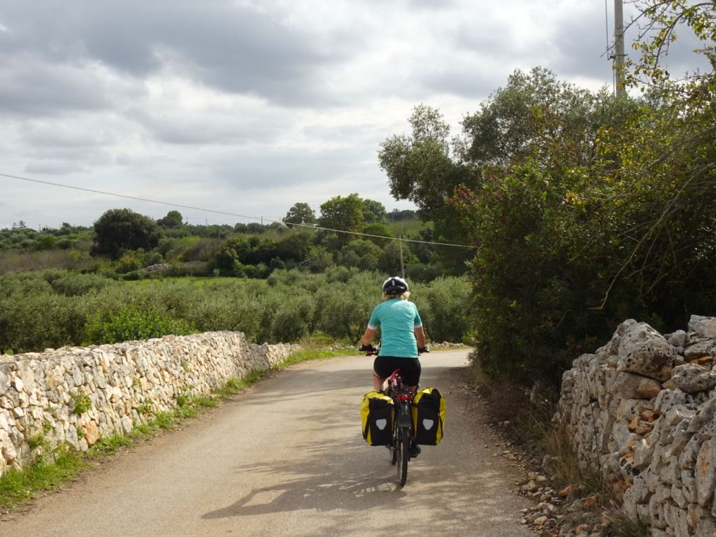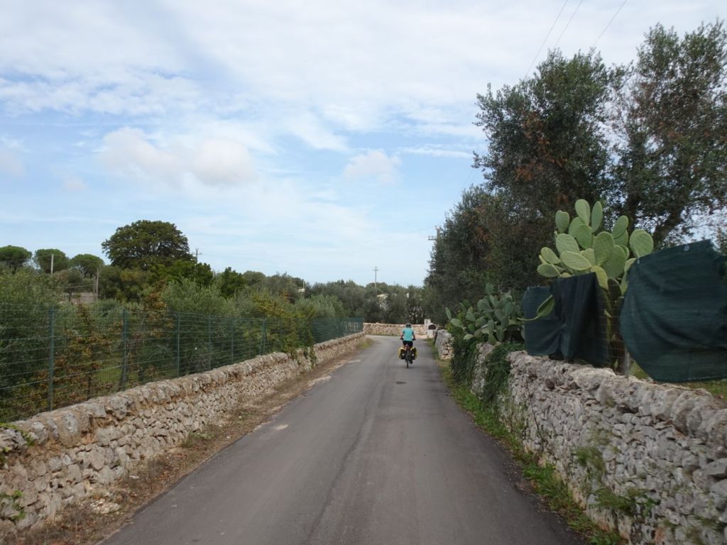 De restanten van het slechte weer trekken westelijk van ons langs, wij kunnen weer fietsen. We hebben drie korte etappes naar ons einddoel Lecce gepland waarvan Alberobello – Ostuni de eerste is.