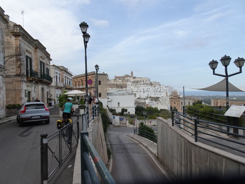 Vroeg op de middag bereiken we Ostuni, een stadje aan de rand van de heuvels van waaruit de Adria goed te zien is.