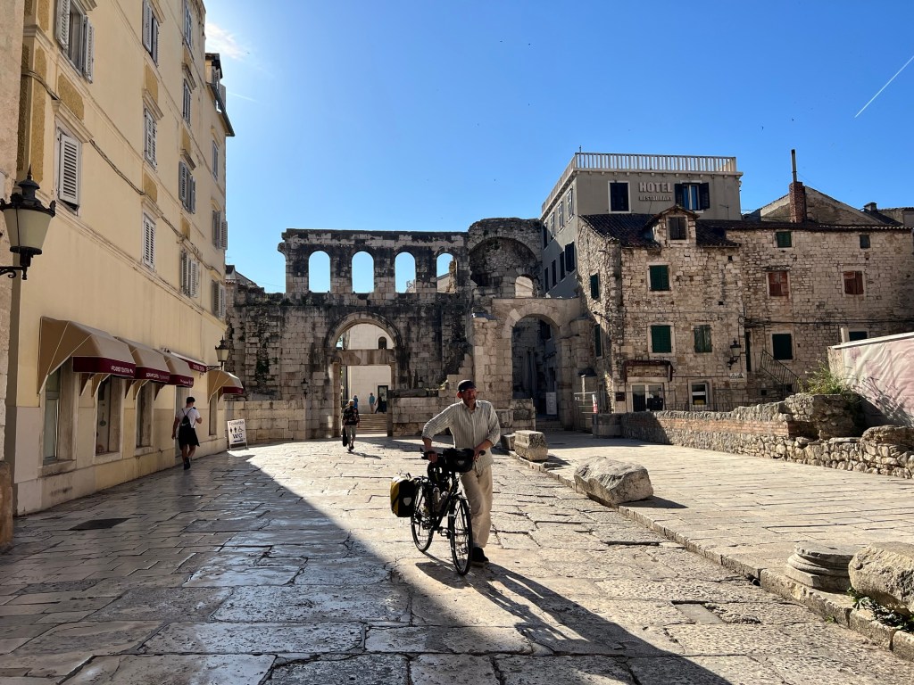 Split is een grote stad maar alle toeristen vind je in een heel klein deel ervan: de oude benedenstad aan het water. Als wij van de boot af zijn en dat oude gedeelte binnen gaan is het er nog heel rustig: het is pas acht uur.