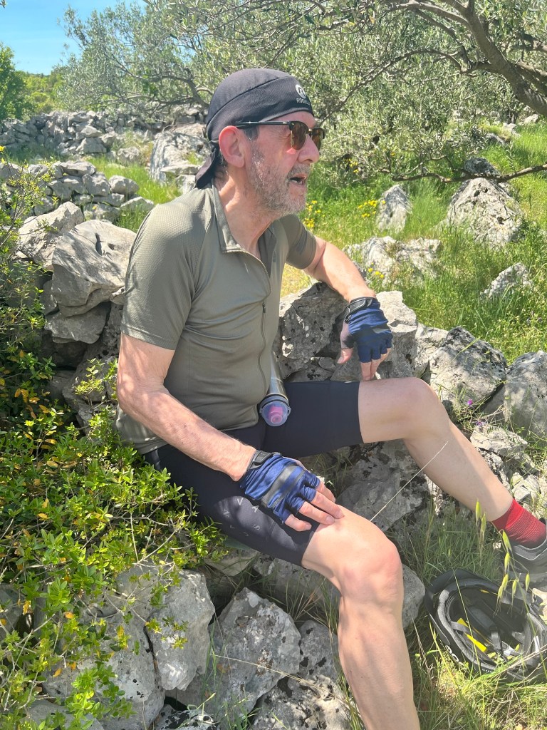 Tot Gurstina is het te doen. Wel hellingen maar een goede en rustige weg. We moeten na een tijdje van die weg af om niet té diep het binnenland in te rijden. Ook nog verhard: beton, hier en daar kapot. Steviger klimmen. En dan: gravel. Een MTB-route.