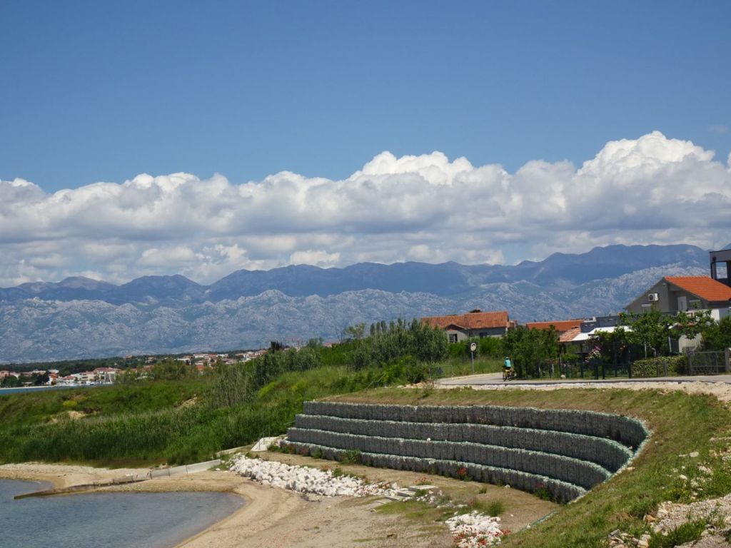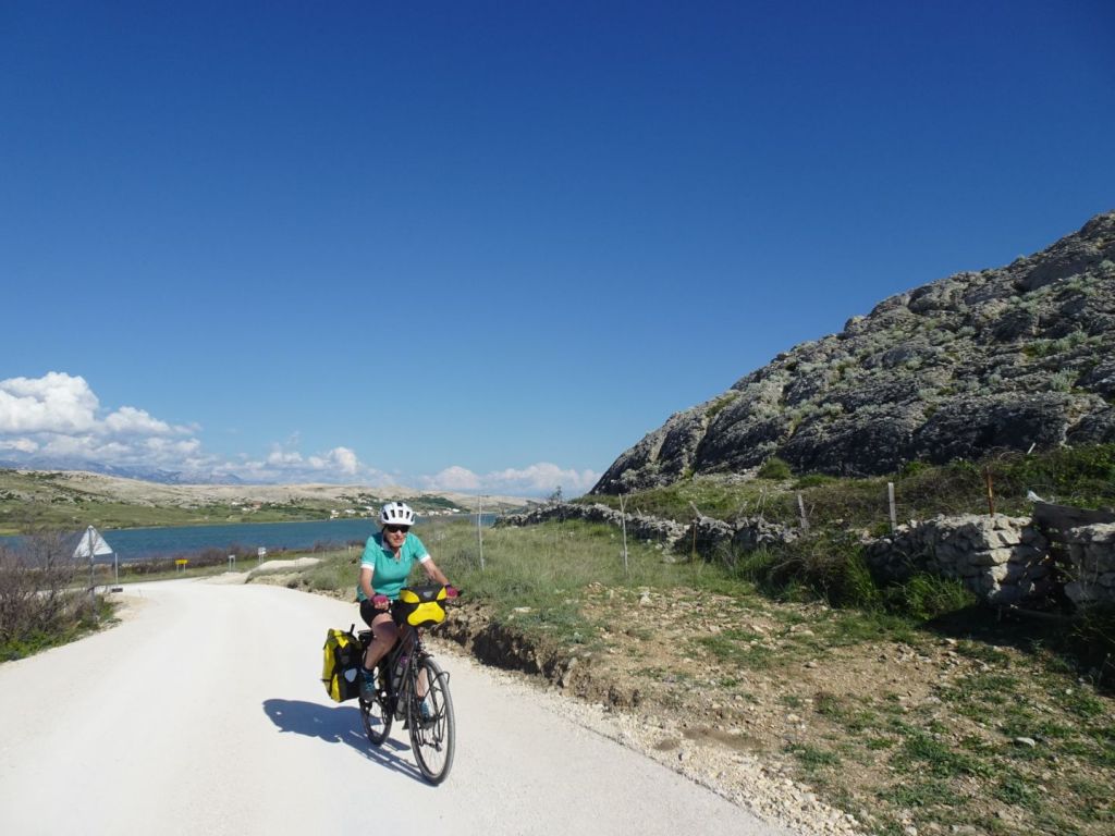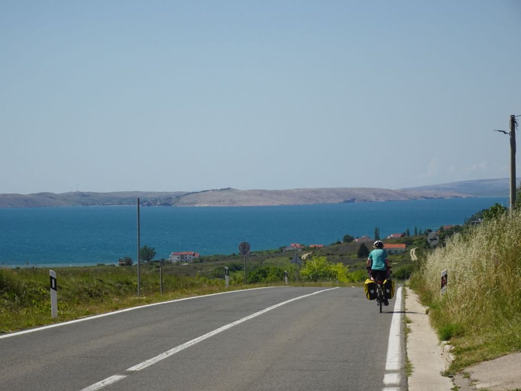 Hierna moeten we een tijdlang een drukke verkeersweg volgen, die naar het eiland Pag leidt. De automobilisten zijn niet per se agressief maar ze rijden vaak veel en veel te hard, soms is het net een circuit van de Formule 1.