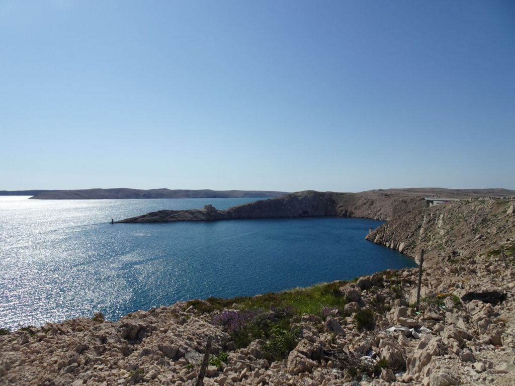 En dan rijden we het eiland Pag op, over een vrij korte brug. Pag is woest. Het grootste deel van het eiland is indrukwekkend kaal en stenig, bijna een maanlandschap.