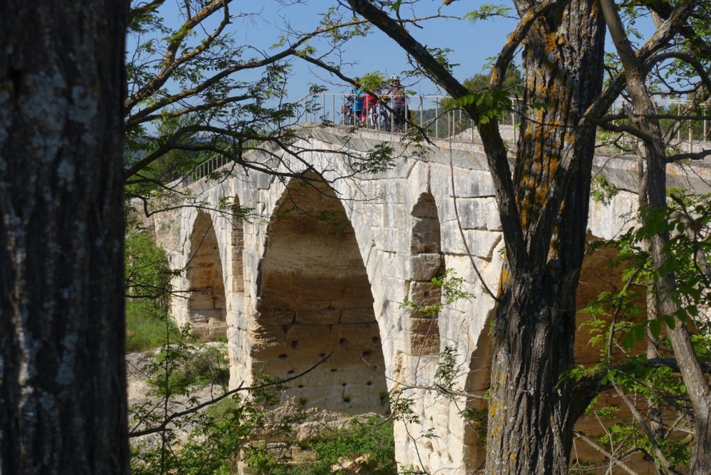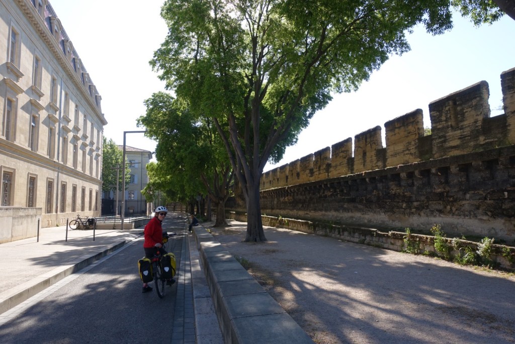We verlaten Avignon zoals we er gisteren in gereden zijn: eerst langs de imposante stadsmuur en dan over de Chemin des canaux de stad uit.