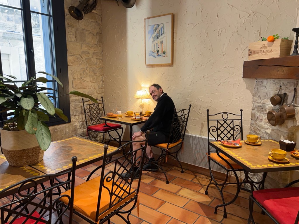 Ook het ontbijt in hotel Le Colbert is prima en erg Frans. Bij ons vertrek beloven we de vriendelijke madame dat we aan het eind van onze tour hier terugkomen. Nu willen we fietsen.